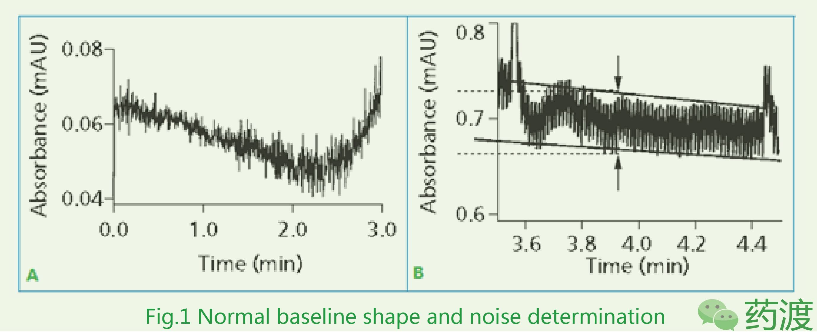 色譜基線也常被稱作背景噪音,是在無樣品組分通過色譜檢測器時,檢測器響應信號的隨機分布。基線噪音的大小直接影響色譜分析方法的檢測靈敏度以及對雜質的檢出能力,如純度測試以及痕量物質殘留檢測方法等。
